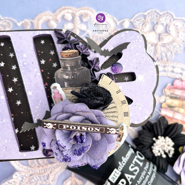 I won't go into my tutorial here on my blog because I've created a full step-by-step video tutorial that you can find over on the Prima Marketing channel right now! But I do want to show you some more photos of this witchy little candy project and some of the gorgeous elements that I love!