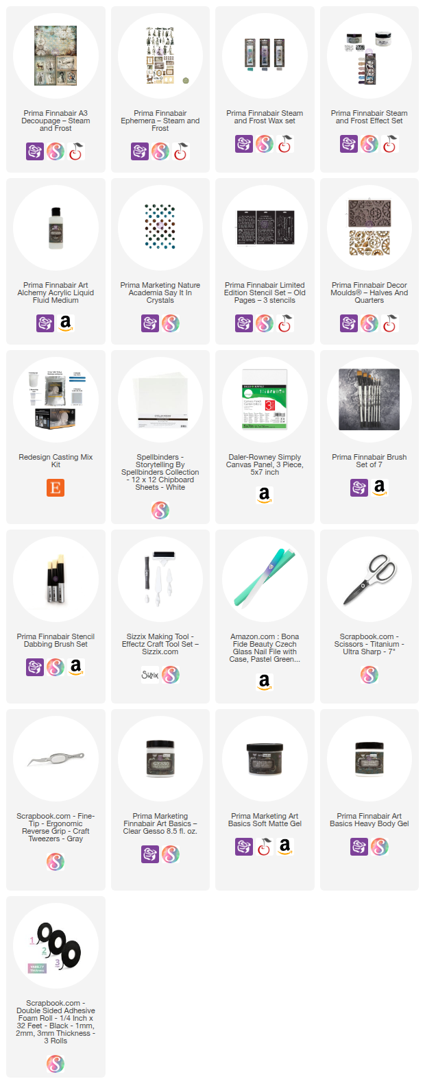 Scrapbook.com, A Cherry On Top, Sizzix, Prima Marketing, Spellbinders, Etsy & Amazon