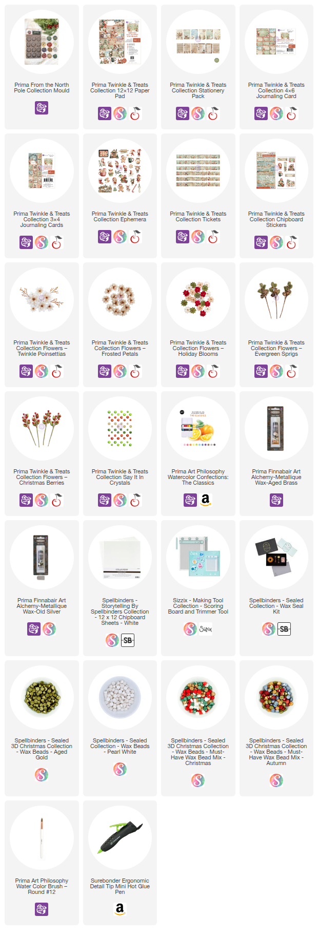 Scrapbook.com, A Cherry On Top, Sizzix, Prima Marketing, Spellbinders, Etsy & Amazon
