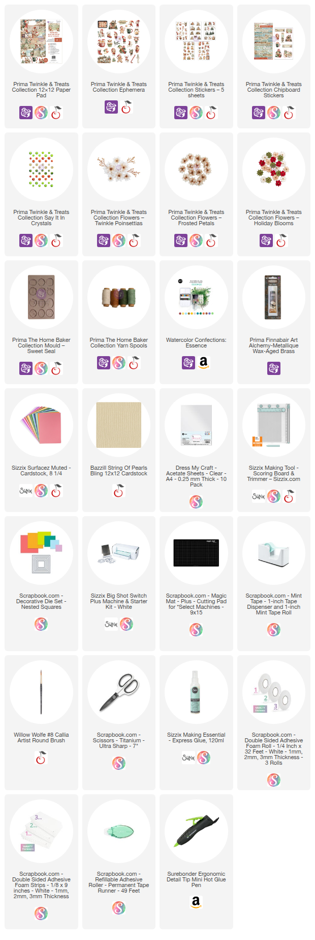 Scrapbook.com, A Cherry On Top, Sizzix, Prima Marketing, Spellbinders, Etsy & Amazon
