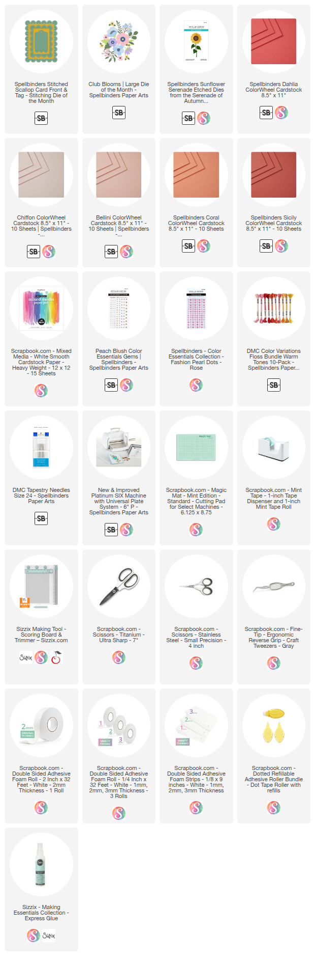 Scrapbook.com, A Cherry On Top, Sizzix, Prima Marketing, Spellbinders, Etsy & Amazon