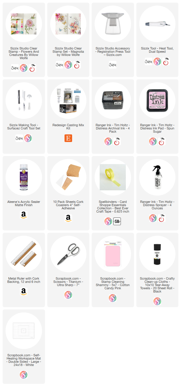 Scrapbook.com, A Cherry On Top, Sizzix, Prima Marketing, Spellbinders, Scrap Diva Designs, Etsy & Amazon