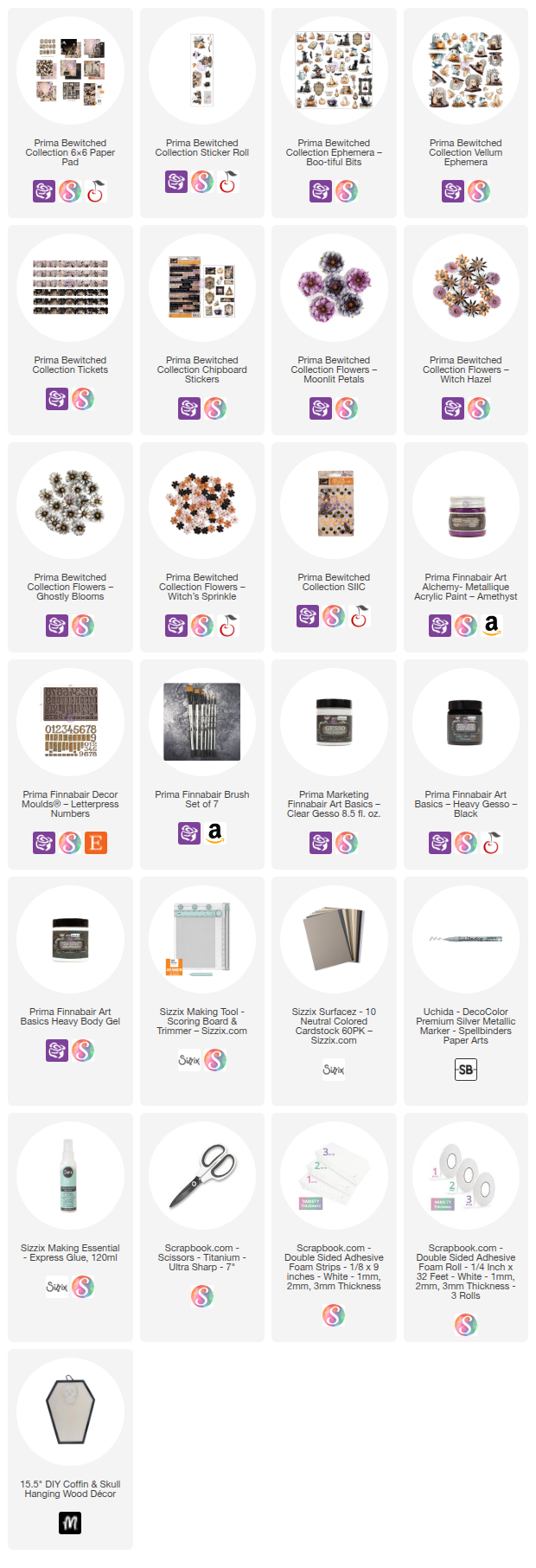 Scrapbook.com, A Cherry On Top, Sizzix, Prima Marketing, Spellbinders, Etsy & Amazon
