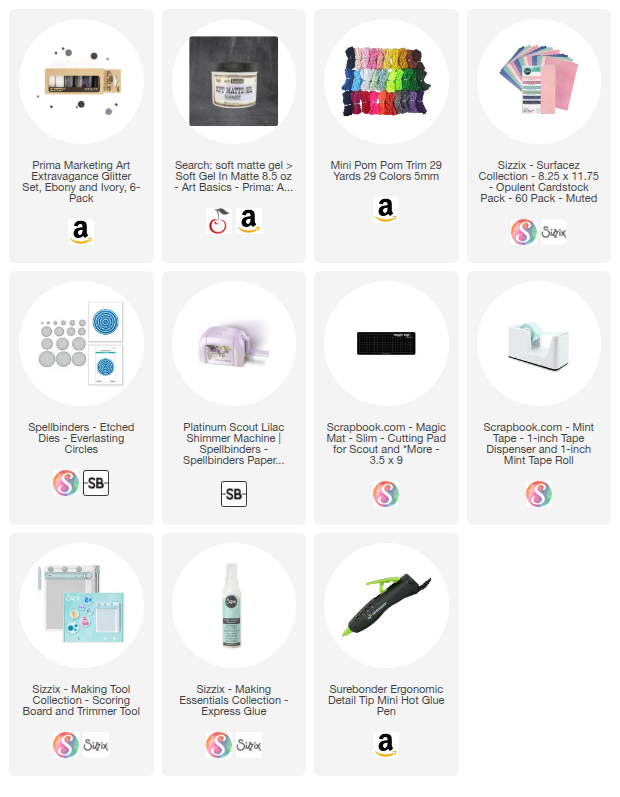 Scrapbook.com, A Cherry On Top, Spellbinders, Sizzix, Etsy & Amazon
