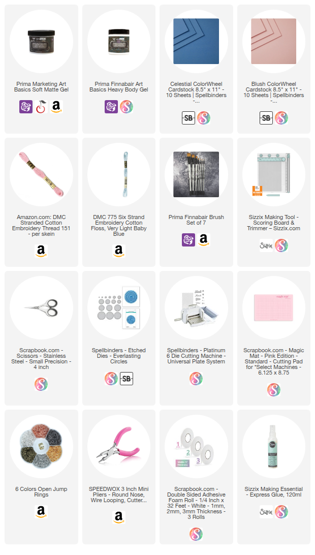 Scrapbook.com, A Cherry On Top, Sizzix, Prima Marketing, Spellbinders, Etsy & Amazon