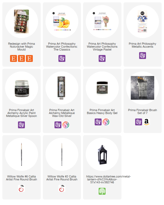 I added some moulds I painted to a basic metal lamp from my local Dollar Tree. These lamps can be decorated for any season you want but since there's nothing better than a warm light around Christmas, I used the Nutcracker Magic Mould from Redesign with Prima for this project.