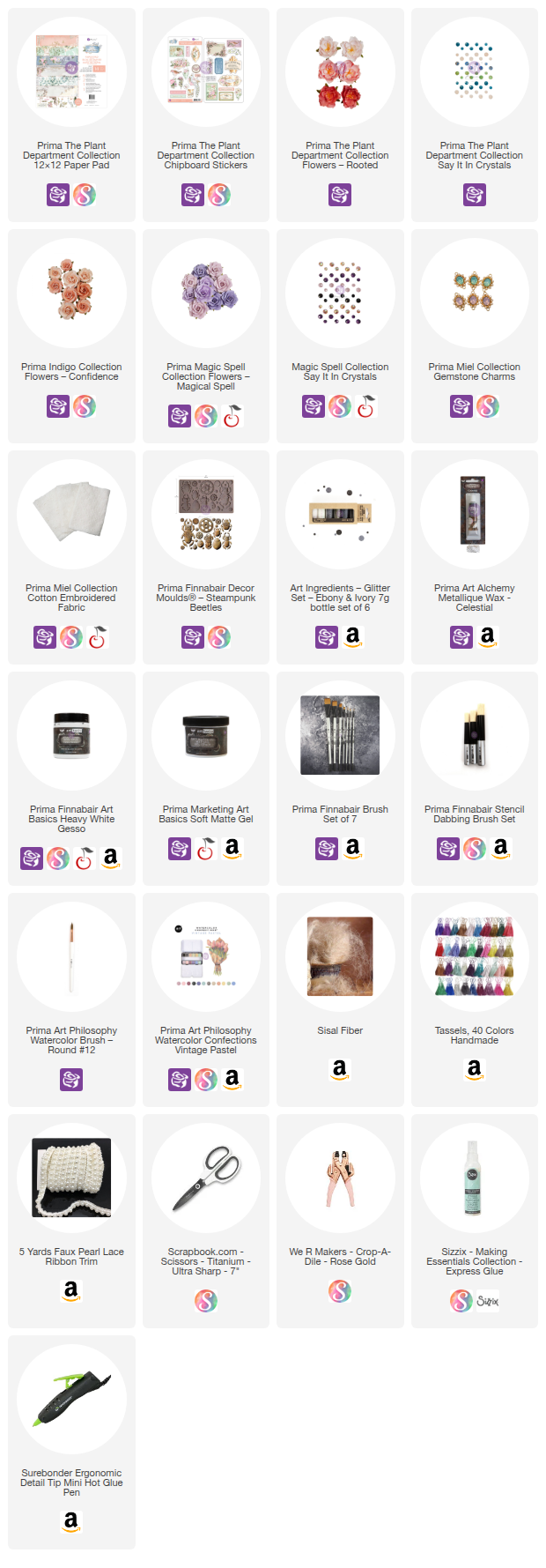 Scrapbook.com, A Cherry On Top, Sizzix, Prima Marketing, Spellbinders, Etsy & Amazon