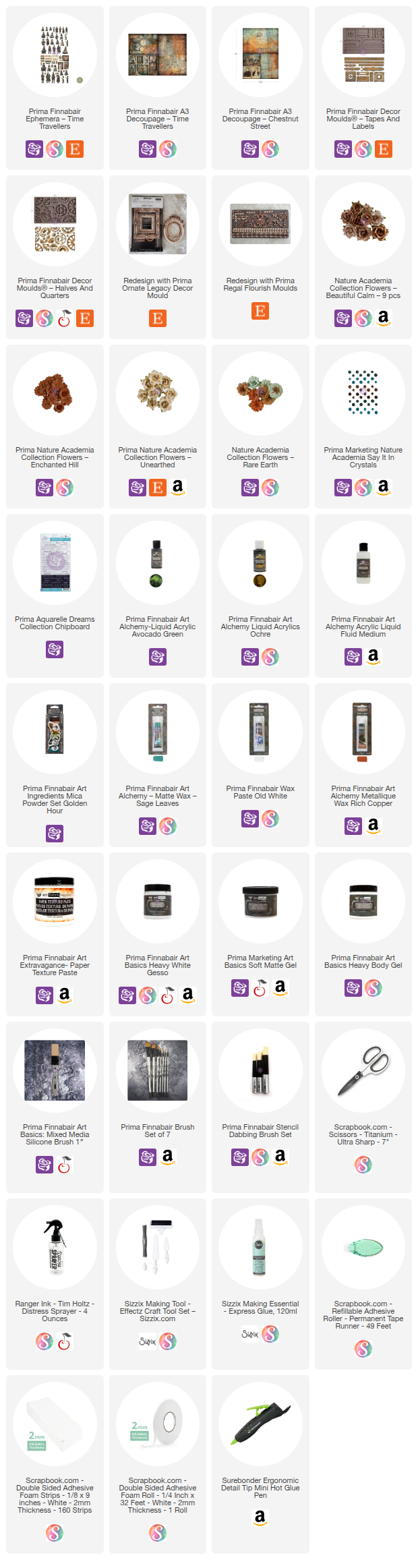 Scrapbook.com, A Cherry On Top, Sizzix, Prima Marketing, Spellbinders, Etsy & Amazon