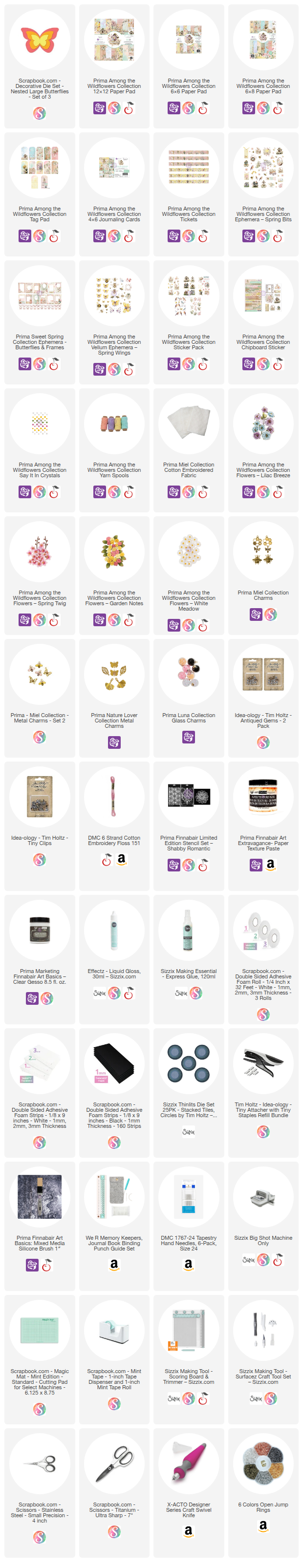 Scrapbook.com, A Cherry On Top, Sizzix, Prima Marketing, Spellbinders, Scrap Diva Designs, Etsy & Amazon