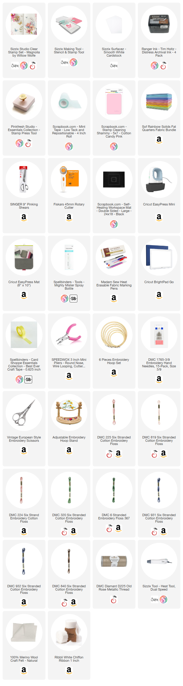 Scrapbook.com, A Cherry On Top, Sizzix, Prima Marketing, Spellbinders, Scrap Diva Designs, Etsy & Amazon